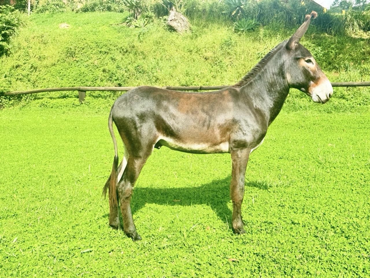 JUMENTO DA RAÇA PEGA, PELAGEM PRETA, ANDAMENTO MARCHA DE CENTRO COM TRÍPLICE APOIO GENUINO, JUMENTO NOVO E JÁ ESTÁ COBRINDO , TEMOS ÉGUAS COM PRENHÊS CONFIRMADA DELE, É MANSO, DÓCIL, E DE BOA ÍNDOLE.
